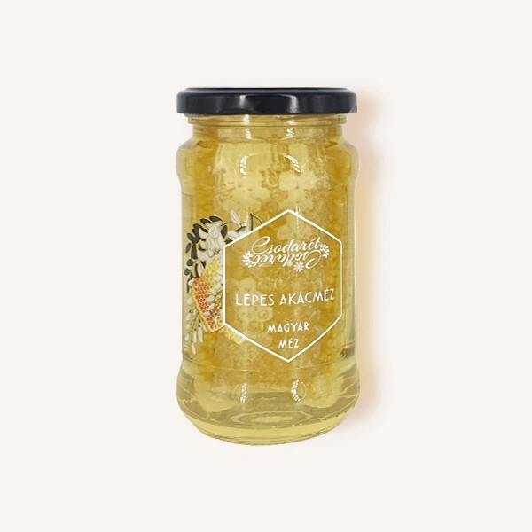 A világhírű magyar akácméz kristálytiszta, világos színű és lágyan édes ízvilágát a méhek által épített viaszsejtek őrzik. A szépen vágott lép nemcsak mutatós, hanem rágcsálva különleges élményt is nyújt, hiszen a viasz és a méz együtt fogyasztható. Igazi ritkaság, amely természetes formájában hozza közelebb a méhek tiszta ajándékát.